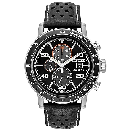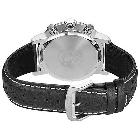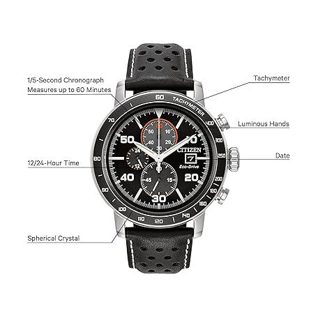 Thông tin sản phẩm Citizen Men's Eco-Drive Weekender Brycen Chronograph Watch in Stainless Steel, Black Leather strap, Black Dial (Model: CA0649-14E)