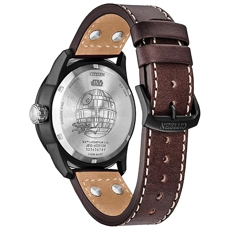 Citizen Men's Eco-Drive X-Wing and Tie Fighter, Ion-Plated Stainless Steel Case, Brown Leather Strap Watch (Model:AW1738-05W)