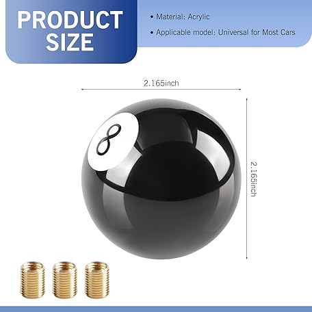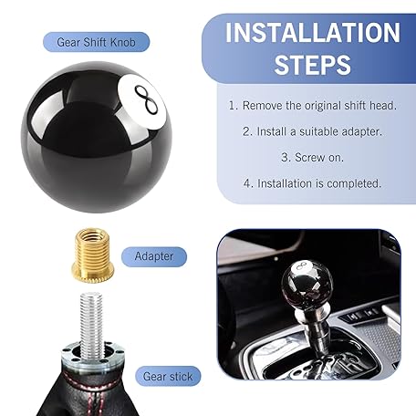 Civwesi Pack-1 Car Round Shift Knob, 2.16" Smooth and Easy to Grip Gear Stick Handle, Personalized Billiards 8 Modification Manual Shift Handle with Adapter, Universal for Most Cars (Black)