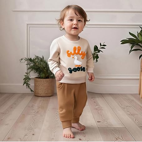 • CIYCUIT Toddler Baby Boy Outfits Goose Embroidered Sweatshirt Pants Set