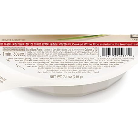 Thông tin sản phẩm CJ Rice Cooked White Hetbahn, Gluten-Free & Vegan, Instant & Microwaveable, 7.4 Oz, 12 Count