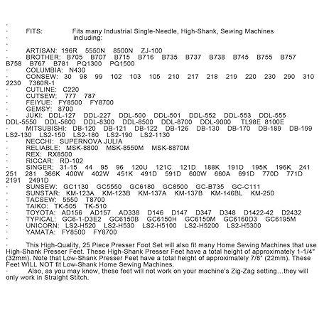 Thông tin sản phẩm ckpsms brand-25PCS Presser feet Compatible with/Replacement for JUKI Brand DDL-5550,DDL-8500,DDL-9000,TL98E,TL-98Q,TL-2010Q Singer Brand 20U,31-15,195K,196K Single Needle High Shank Sewing Machine