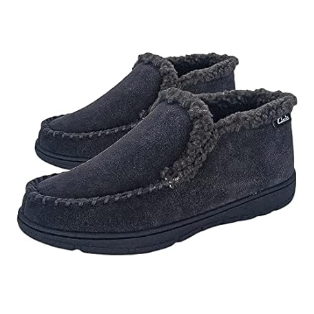 Clarks Men's Suede Leather Sherpa Lined Ankle Bootie Slippers, JMH1952 - Indoor/Outdoor Slip-Ons - Comfy & Durable Ankle Boots with Plush Lining Padded Insole & Gripped Rubber Outsoles