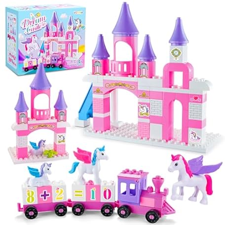 Classic Building Blocks for Toddlers - Compatible with Major Brands, Unicorn Theme Princess Castle & Number Trains Classic Bricks, Creative Educational Buildable Kits for Girls Boys Ages 3, 4, 5, 6-12