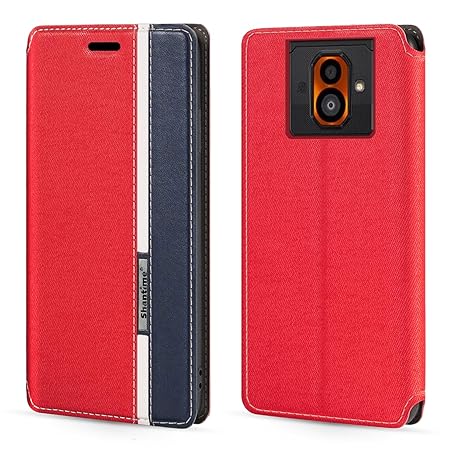 Classic Stripes Faux Leather Flip Case Compatible with Kyocera Torque G04 KYV46, Invisible Magnetic Cover with Card Slot, Contrast Color Design(Red)