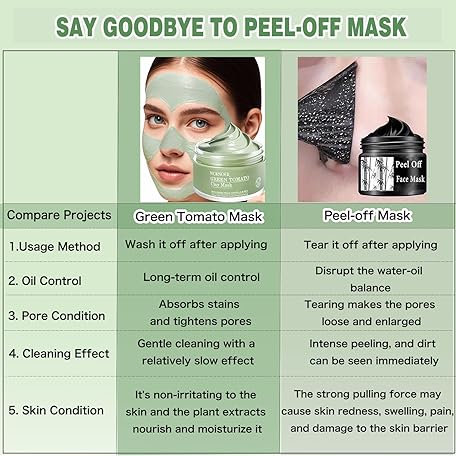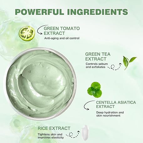 Thông tin sản phẩm Clay Mask for Face, Blackhead White Remover, Green Tomato Mask Cleanser Skincare, 5.07 fl.oz Nose Pore Black Head Purifying, Tea Deep Cleanse Mud Masks with Centella Asiatica, Rice Men Sebum Care