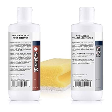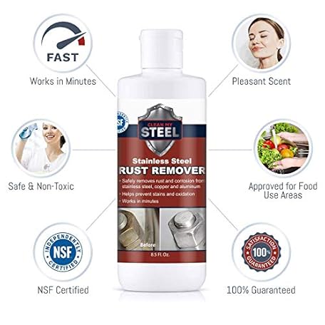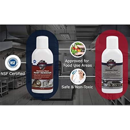 Thông tin sản phẩm CLEAN MY STEEL Stainless Steel Rust Stain Remover & Cleaner Kit, NSF Safe for Food Areas. Includes Cleaner for Commercial Equipment, Appliances, Gloves & Sponge (8.5 oz)