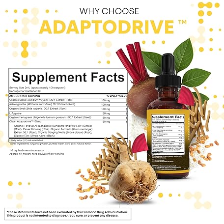 Thông tin sản phẩm Clean Nutra Organic Maca Root Liquid Drops with Ashwagandha, Fenugreek, Beet Root and L-Arginine Liquid Multivitamin for Women and Men - Adapto Drive