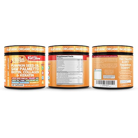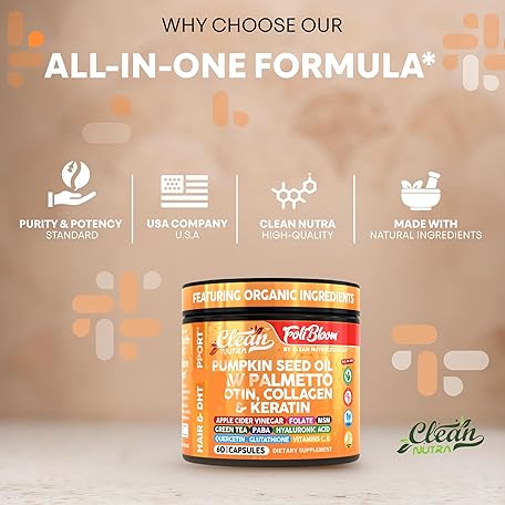 Clean Nutra Pumpkin Seed Oil Capsules + Saw Palmetto Biotin Collagen Keratin MSM Folate Hyaluronic Acid Supplements B12 Zinc Hair Supplement for Women Men Iodine 5-MTHF B-12 Vitamin B9-60 Pills