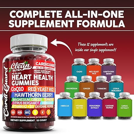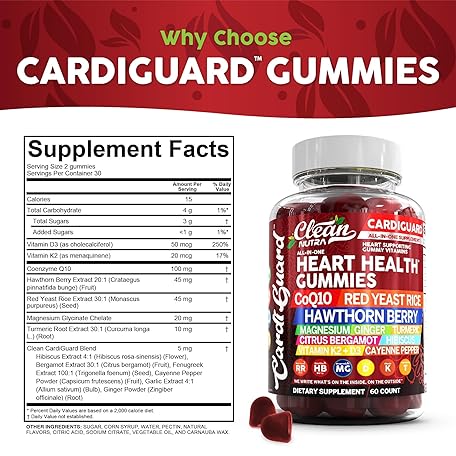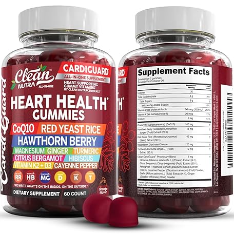 Clean Nutraceuticals Coq10 Gummies | Red Yeast Rice Hawthorn Berry Ginger Turmeric Citrus Bergamot Hibiscus Vitamin K2+D3 Magnesium Glycinate Cayenne Pepper Fenugreek Orange Flavor CardiGuard