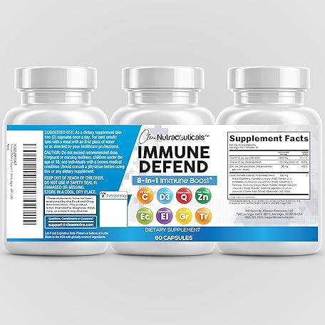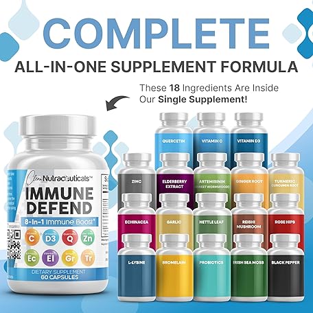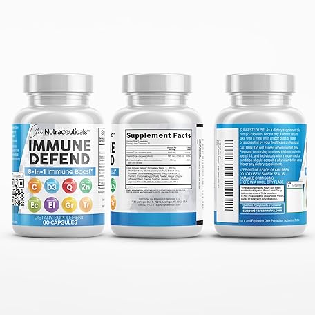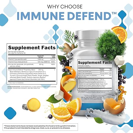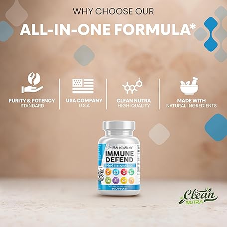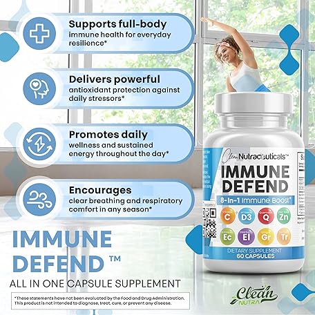 Thông tin sản phẩm Clean Nutraceuticals Immune Defense Support Supplement 8 in 1 with Zinc 50mg Quercetin, VIT C 1000mg, Vitamin D3 5000 IU, Elderberry, Ginger - Immunity System Booster for Adults, Vegan - 60 Count