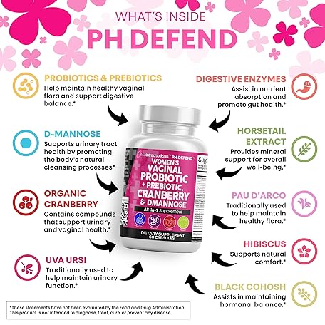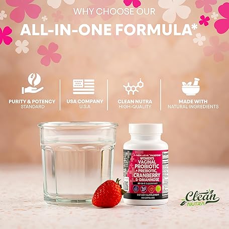 Thông tin sản phẩm Clean Nutraceuticals Vaginal Probiotics for Women with Cranberry, D-Mannose, Prebiotics, pH Balance Support, Feminine Health, Urinary Tract Cleanse – Capsule Alternative to Gummies – 60 Count