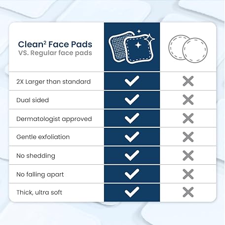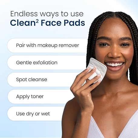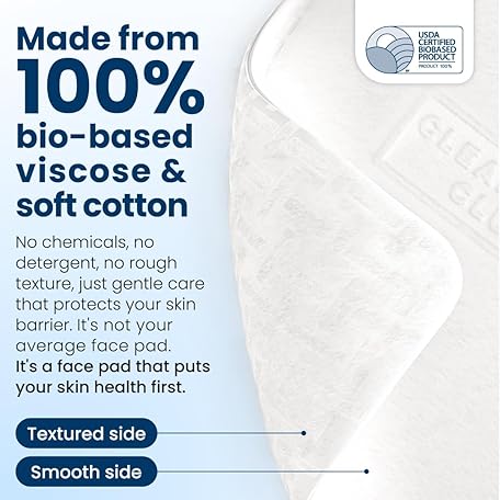 Thông tin sản phẩm CLEAN SKIN CLUB Clean² Pads 2.0 [New & Improved Edges] Guaranteed Not to Shed & Tear Face Pads, Unique Triple Layers, Textured & Ultra Soft Side, Organic Disposable Cotton, Pair with Makeup Remover