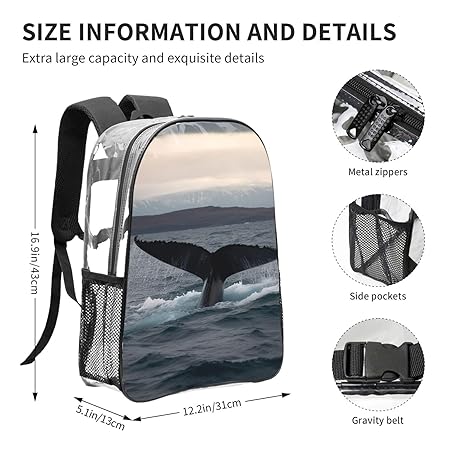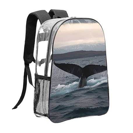 Clear Backpack Waterproof PVC Transparent Laptops Bag Humpback Whale Tail Heavy Duty See Through Daypack
