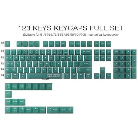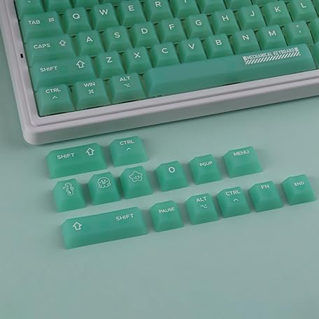Clear Keycaps, Green Custom Keycaps 75 Percent, 123 Keys Shine Through Transparent Jelly Cute Keycap, PC Material Cherry Profile Keyboard Key Cap Set for Cherry Gateron MX Mechanical Keyboard