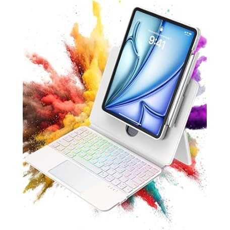 Clear Magnetic iPad Air 13(M3 2025 / M2 2024) and iPad Pro 12.9 (3rd-6th Gen) Case w/Keyboard, Splitfolio Detachable Cover, 360°Rotation & Up-Down Lift, 7-Color Backlit, Multi-Touch Trackpad, White