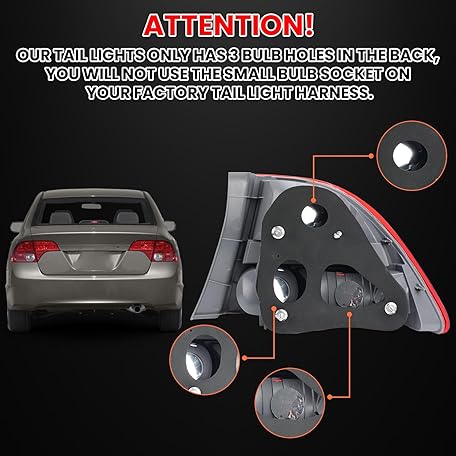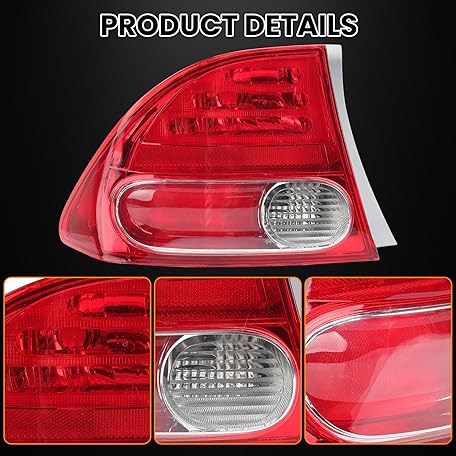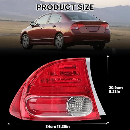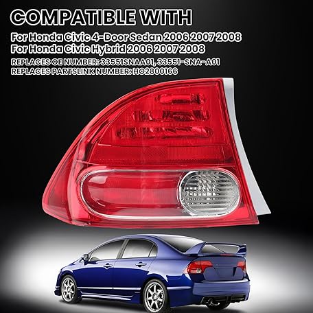 • Clidr Tail Light Lens for 2006 2007 2008 Honda Civic 4-Door Sedan/Hybrid Driver Side HO2800166 33551SNAA01 (Left)