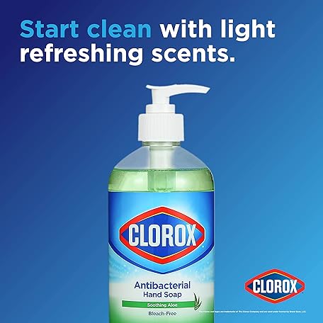 Thông tin sản phẩm CLOROX Antibacterial Liquid Hand Soap with Pump, Soothing Aloe Scent - Scented Hand Wash, Liquid Soap for Bathroom or Kitchen - Washes Away Dirt from Hands and Keeps Them Soft, 16 Fl Oz