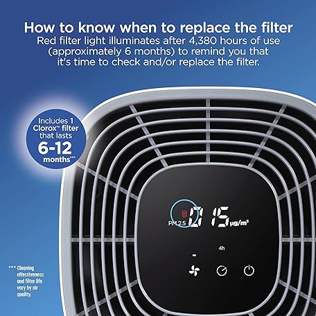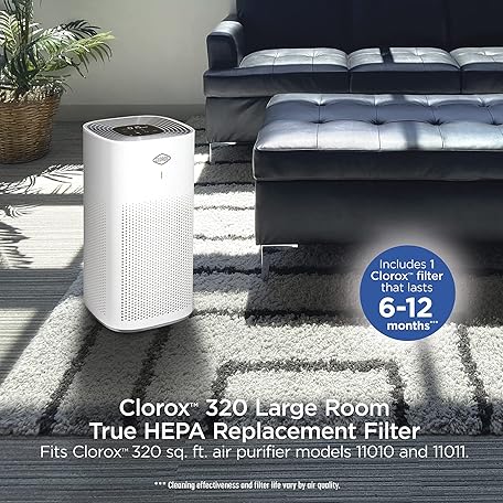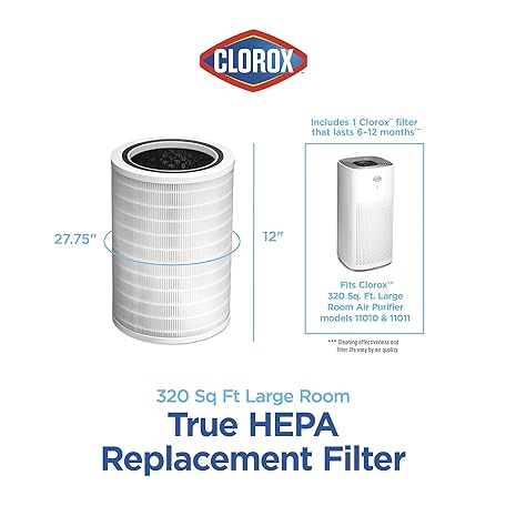 Thông tin sản phẩm Clorox Large Room Air Purifier True HEPA Replacement Filter, 1,500 Sq. Ft. Capacity, Removes 99.97% of Allergens up to 0.1 Micron, Compatible with 11010 & 11011, 1 Count (12010)