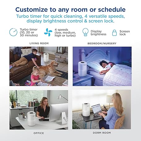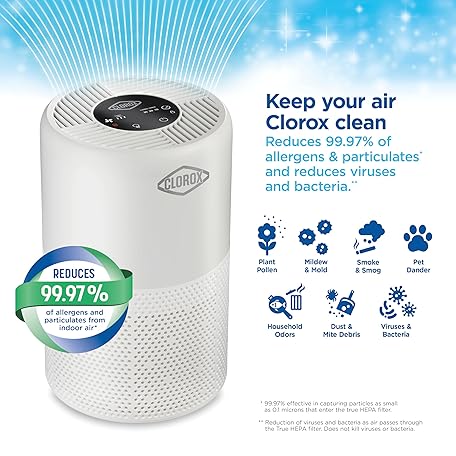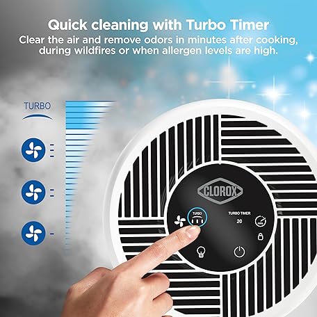 Clorox Turbo Air Purifiers for Home, True HEPA Filter, Quickly Cleans Medium Rooms Up to 1,000 Sq Ft, Reduces 99.9% of Mold, Viruses, Wildfire Smoke, Allergens, Pet Allergies, Dust, Whisper Quiet