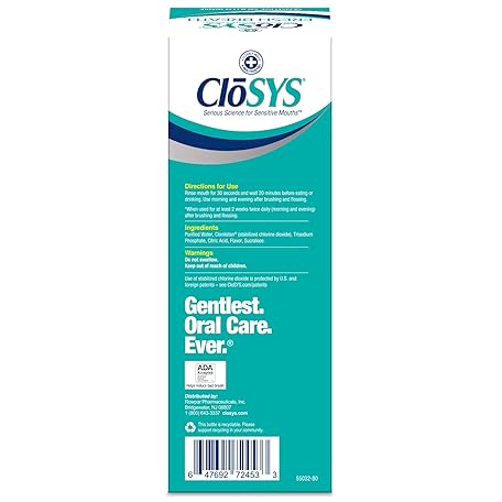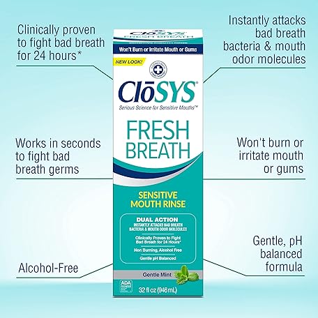Thông tin sản phẩm CloSYS Sensitive Mouthwash, 32 Ounce, 2 Count, Gentle Mint, Alcohol Free, Dye Free, pH Balanced, Helps Soothe Mouth Sensitivity, Fights Bad Breath