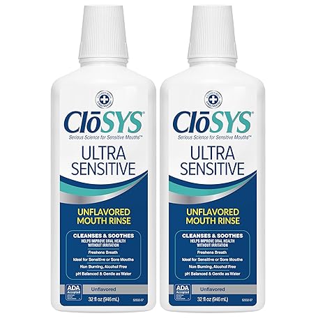 Thông tin sản phẩm CloSYS Ultra Sensitive Mouthwash, Unflavored Alcohol Free, Dye Free, pH Balanced, Helps Soothe Entire Mouth – 32 Oz (Pack of 2)