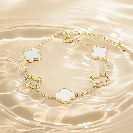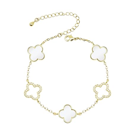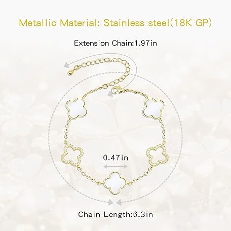 • Clover Bracelet for Women 18k Gold Plated Silver Lucky Four Leaf Link Chain Bracelets Charm Trendy Jewelry Gifts for Women