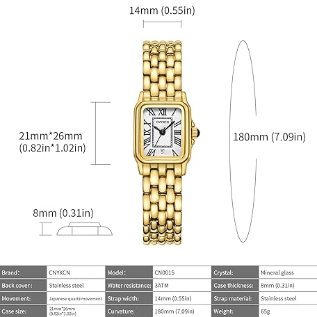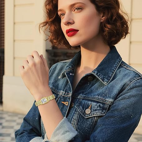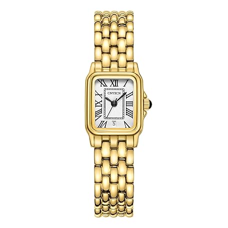 • CNYXCN Gold Watches for Women with Rectangular Case,Roman Dial,Vintage Bracelet,Water Resistant