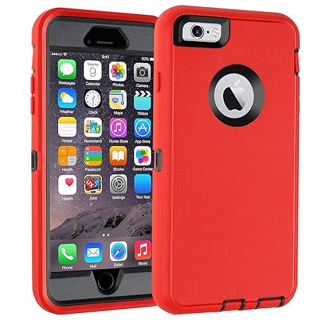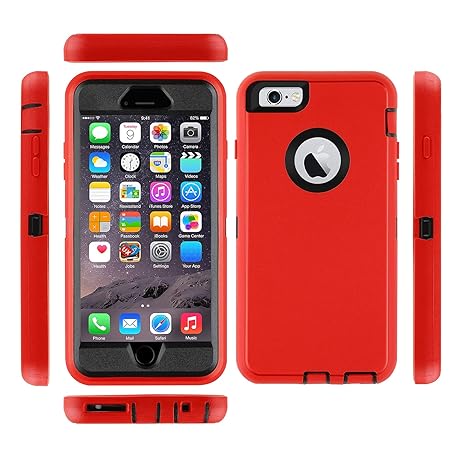 Co-Goldguard Case for iPhone 6 Plus/6S Plus Case Built in Screen Protector Heavy Duty 3 Layer Full Body Shockproof Dust-Proof Drop-Proof Durable Cover for iPhone 6 Plus/6S Plus 5.5inch (RedBlack)