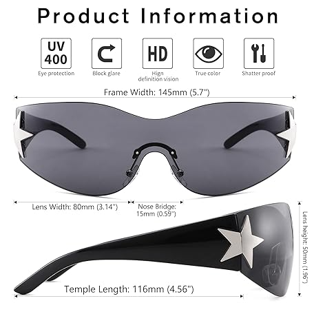 Sản phẩm COASION Rimless Y2K Wrap Around Star Sunglasses Women Men 2000s Visor Shield Shades Oversized Fashion Frameless Sun Glasses đang được bán với giá ưu đãi là $10.8891 tại nước Mỹ.