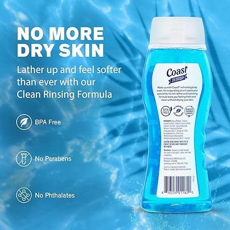 Thông tin sản phẩm Coast 2-in-1 Hair and Body Wash, Classic Scent - Men's Body Wash, Shampoo & Conditioner - 6 Pack x 18 Fl Oz - Moisturizing & Refreshing Rich Lather for Energized And Clean Skin