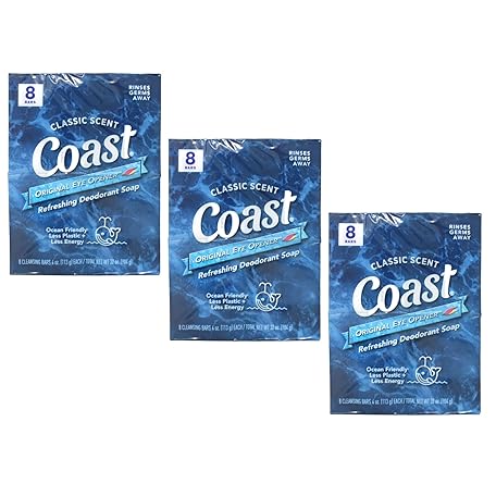 Coast Classic Scent Original Eye Opener Refreshing Deodorant Soap, 8 Bars, 4 oz Each (Pack of 3, 24 Bars Total)