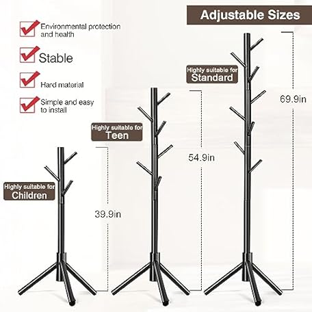 Thông tin sản phẩm Coat Rack, Freestanding Coat Rack with 8 Hooks and 3 Adjustable Size Tree Coat Racks for Bedroom, Hallway, Entrance, Office, for Hats, Coats, Scarves, Handbags