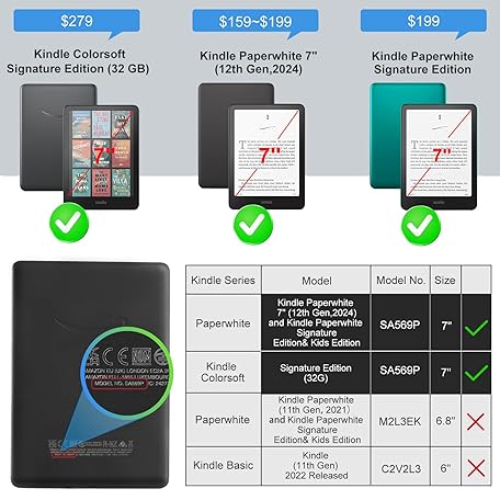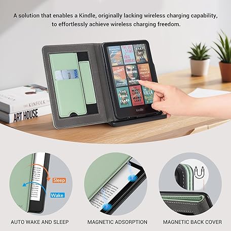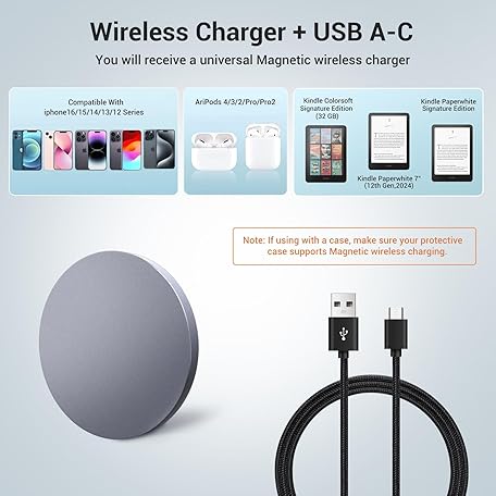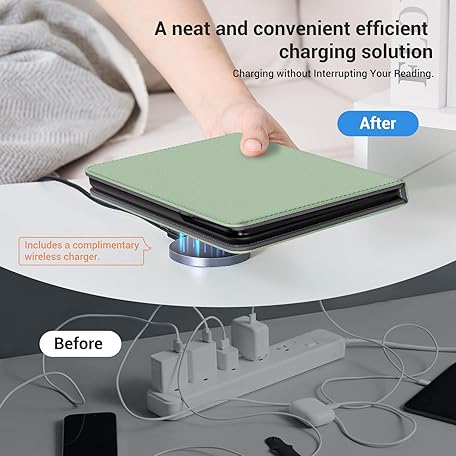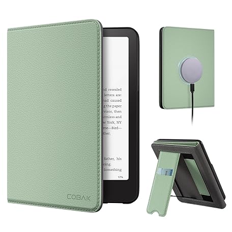 CoBak Wireless Charge Stand Case for 7" Kindle Paperwhite 12th Gen 2024 and Kindle Colorsoft with Wireless Charger - Compatible with iPhone MagSafe, for Samsung Phones, Auto Sleep Wake, Hand Strap