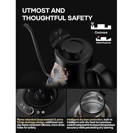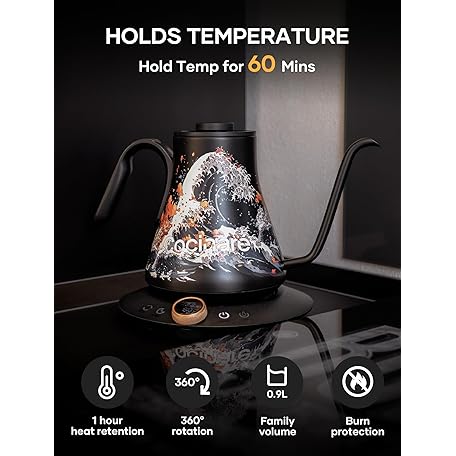 Thông tin sản phẩm Cocinare FLOW M9 Electric Gooseneck Kettle, ±1℉ Temperature Control for Pour-over Coffee & Tea, Stainless Steel Interior, Quick Heating for Boiling Water (Wave)