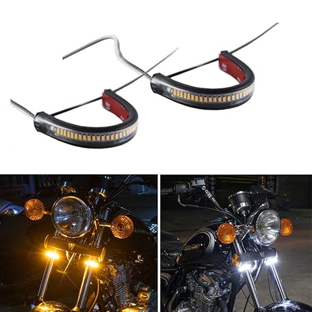 Sản phẩm CoCsmart 2PC Flexible Switchback Dual-Color White & Amber Motorcycle LED Fork Turn Signal Blinkers DRL Daytime Running Light Waterproof Adjustable Stips Bars kit Universal Fit Motorbike (39mm-70mm) đang được bán với giá ưu đãi là $14.1591 tại nước Mỹ.