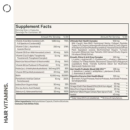 Thông tin sản phẩm Codeage Hair Vitamins 10000 mcg Biotin, Keratin, Collagen, Vitamin A, B12, C, D3, E, Zinc, Turmeric, Probiotics, Enzymes, Inositol - Hair Care Support - Healthy Hair Supplement Pills - 120 Capsules