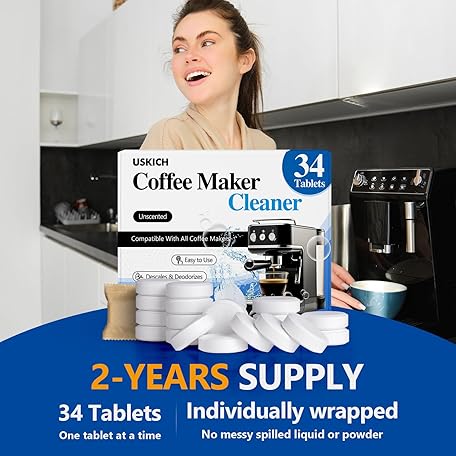 • Coffee Machine Cleaner Descaler Tablets 34 Pack, Coffee Maker Cleaner for Keurig, Ninja, Breville, Delonghi, Nespresso, Miele,Espresso Machine Cleaning Tabs,Descaling Solution for Coffee Pot Maker