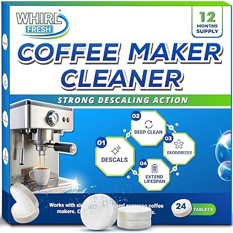 Coffee Machine Descaler Tablets – 24 Count, Coffee Maker Cleaner Tablets Compatible with All Major Brands Including Breville, Nespresso, Keurig, Ninja, Philips,Miele, Delonghi & more