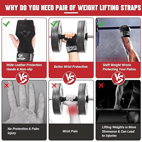 Thông tin sản phẩm COFOF Weight Lifting Wrist Strap, Double Layer Leather Wrist Strap for Deadlift and Powerlifting, Adjustable Neoprene Padded Gym Workout Lifting Hooks (Pair)