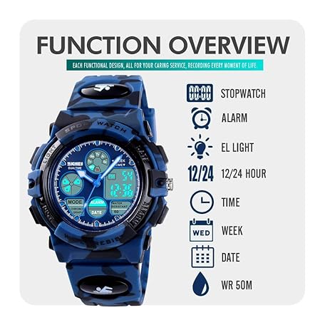Thông tin sản phẩm cofuo Kids Digital Sport Watch, Boys Girls Waterproof Sports Outdoor Watches Children Casual Electronic Analog Quartz Wrist Watches with Alarm Stopwatch