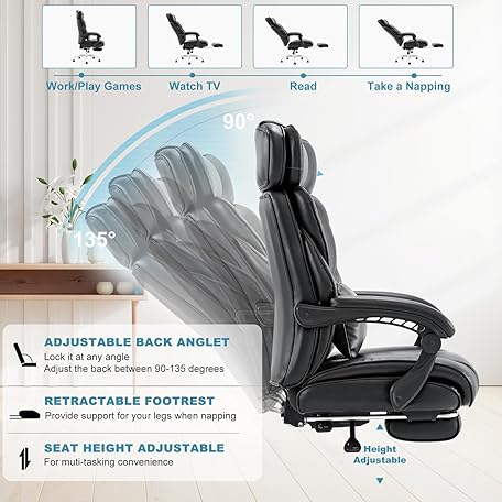 Thông tin sản phẩm COLAMY Office Chair with Footrest, Ergonomic High Back Design Executive Computer Desk Chair with Removable Lumbar Pillow, 90-135°Reclining, Thick Bonded Leather for Home Office Work Comfort, Black