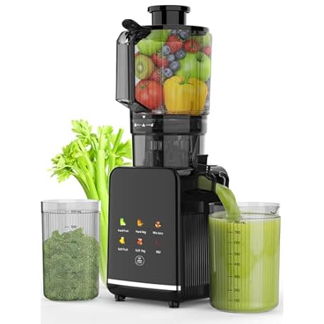 Cold Press Juicer, 4.35" Large Feed Chute Electric Juicer Machine High Juice Yield Slow Masticating Juicer for Whole Vegetables & Fruits, Easy Assemble & Cleaning