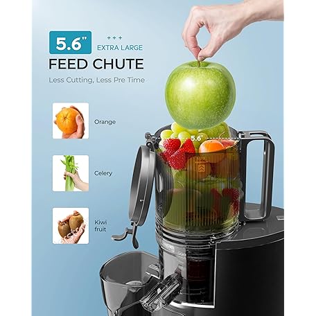 Thông tin sản phẩm Cold Press Juicer, EUHOMY 5.6" Extra Large Feed Chute Slow Masticating Juicer, 250W Juicer Machines, 99.6% High Juice Yield,for Whole Vegetables & Fruits, Reverse Function, Easy to clean.Black