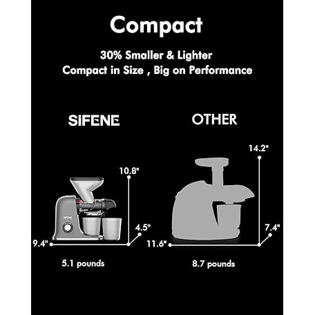 Thương hiệu SIFENE là cái tên nổi tiếng được rất nhiều khách hàng trên thế giới chọn lựa. Với kiểu dáng đẹp mắt, sang trọng, sản phẩm Cold Press Juicer Machine - Compact Slow Masticating Juicer, Easy to Clean, Grey là sự lựa chọn hoàn hảo nếu bạn đang tìm mua một món cho riêng mình.
