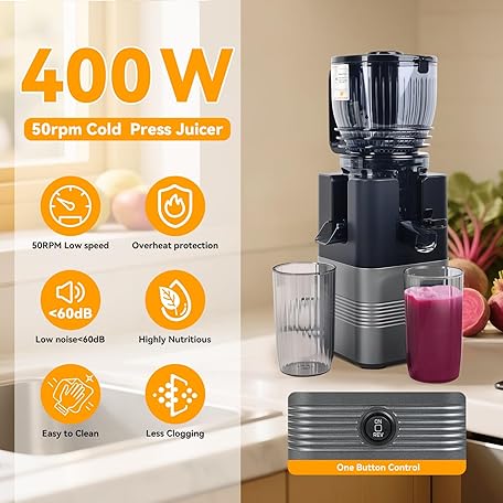 Thông tin sản phẩm Cold Press Juicer Machines,5.8" Extra Wide Feed Chute juicer machines,350W Slow Cold Press Juicer Machines,Slow Masticating Juicer with High Juice Yield for Whole Vegetables & Fruits, Easy to Clean
