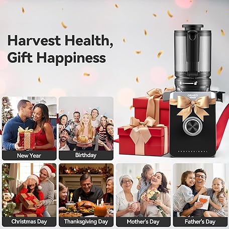 Thông tin sản phẩm Cold Press Juicer, ORMEO HOME Juicer Machines with 4.35"Large Feed Chute Fit Whole Vegetables & Fruits, Masticating Juicer with Pulp Seperation, 99.6% Juice Purity, Quiet Motor, Easy to Clean,BPA Free