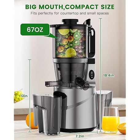 Thông tin sản phẩm Cold Press Juicer - Slow Juicer Machines with 5.5" Feeding Chute, Masticating Juicer Fit Whole Fruits and Vegetables, Auto-cutting Auger, Easy to Clean (silver)