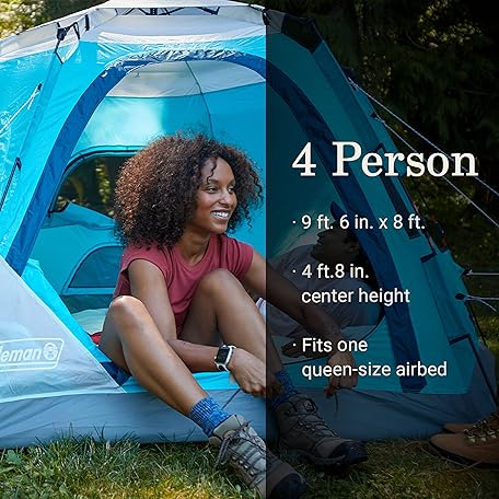 Thông tin sản phẩm Coleman Camp Burst 4-Person Camping Tent, Umbrella-Style Pop-Up Tent with 45s Easy Setup, Dark Room Option Available, Tub Floor and Taped Seams Keep You Dry, 360° Views