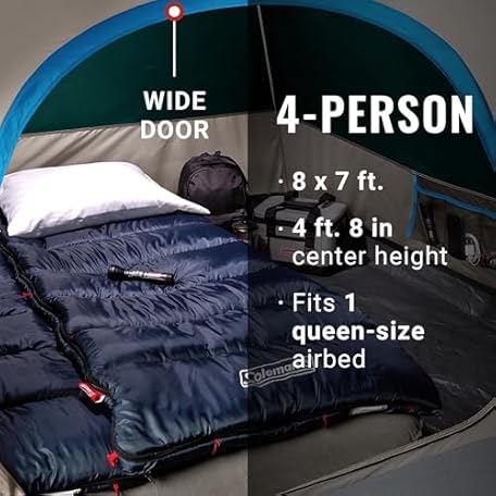 • Coleman Skydome Tent with 5 Minute Setup, 2/4/6/8-Person Weatherproof Tent with Rainfly & Carry Bag, 20% More Headroom Than Traditional Canopies